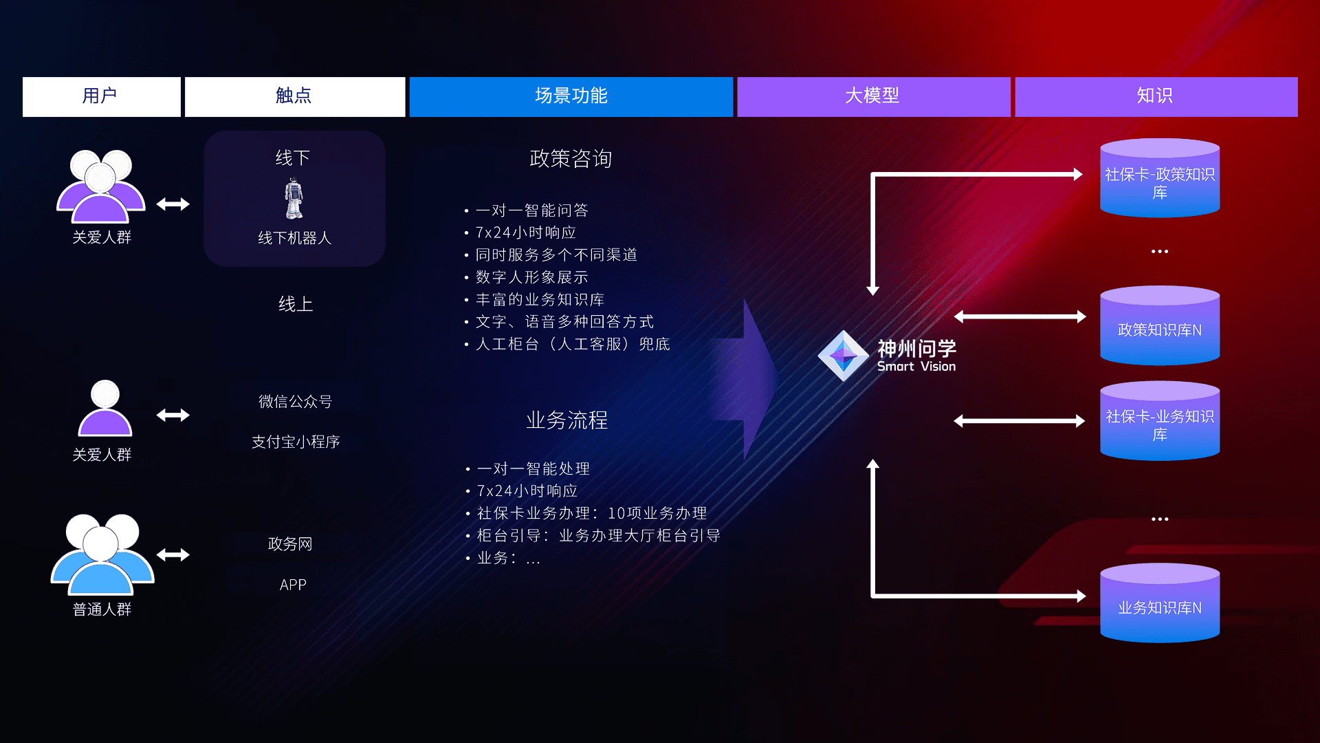 • 线上线下全覆盖:线上提供微信公众号、、、支付宝小程序、、、政务网、、、app多种渠道,,,,与线下机器人形成完整服务体系。。。